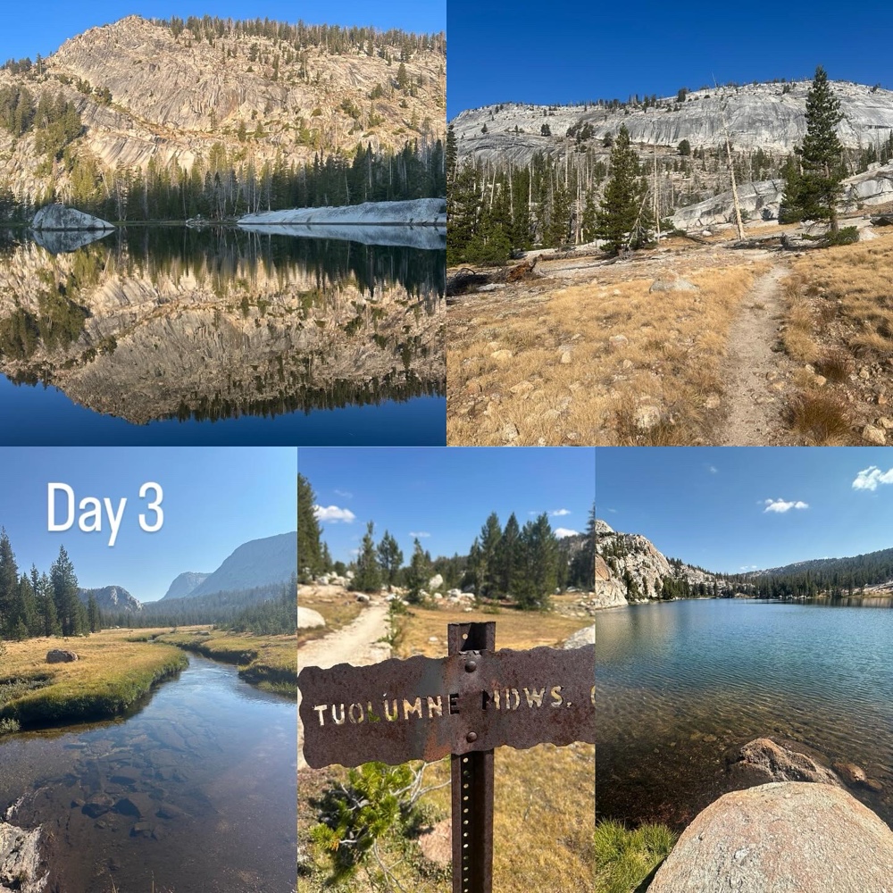 We are heading back to Tuolumne Meadows today as Mark’s sleeping pad sprung a leak and it feels just right to hike another 10 mile day. 3 day trip and 30 miles. Not too much for me, but still significant, as we’ve also been climbing around 2500 feet each day. My legs feel tired while my heart feels content.